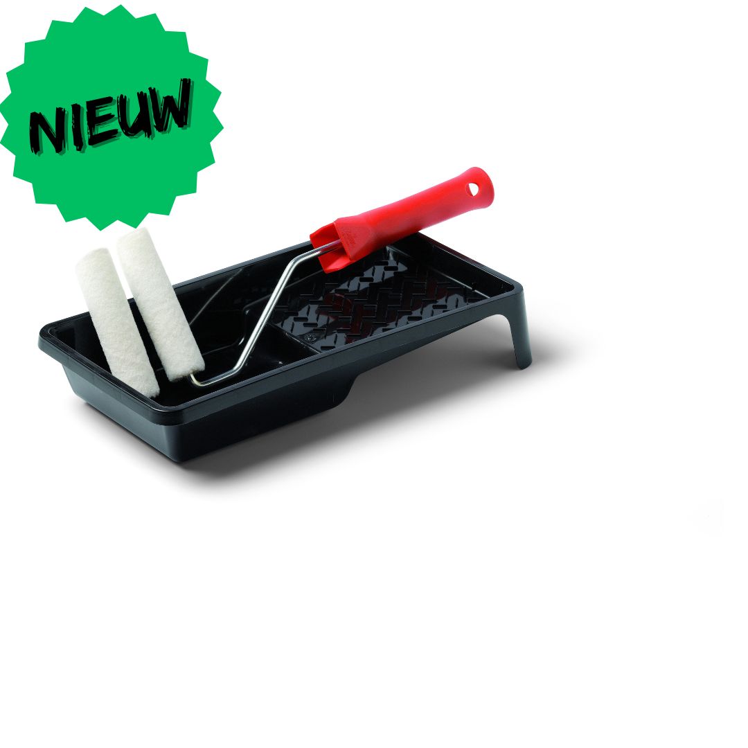 SChuller Felt HK-R Set 10 cm – Compleet Mini verfrollerset voor Gladde Oppervlakken. De Felt vilroller HK-R Set 10 cm is een praktisch mini verfrollerset, ontworpen voor precisiewerk op kleinere, gladde oppervlakken zoals deuren en raamkozijnen. Het set bevat twee gladde vilten rollers, een verfbakje en een ergonomische handgreep, waardoor het ideaal is voor het aanbrengen van watergedragen verven en lakken.